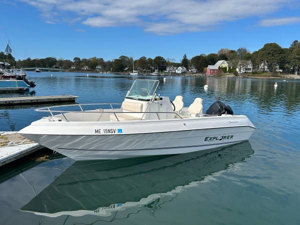 NOV 26th - Today, decided to let this excellent boat go for a 'drop-dead' price. This 19' Deep-V model center console, is a superb riding, very stable and fast 2005 Canadian-built Campion Explorer 582 runabout. Under the console, is a head/storage compartment, quite unique for a boat of this configuration. Brand new Garmin GPS/Fishfinder. 2006 Venture trailer in excellent condition. Internal fuel tank of 45-gallons and single battery located in aft stbd compartment. Four-stroke motor is a 2005 Mercury 115hp with motor manual. Not sure of the hours, but perfectly maintained. In wrapped storage in Kittery, and available to be seen anytime. Thank you!