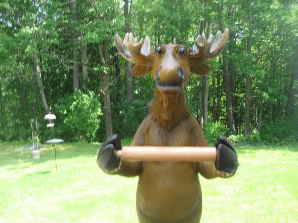 Up for sale is a pretty cute looking-standing moose -toilet paper holder-24" tall. He has been in storage and is still in new condition. Although this little guy was made to hold toilet paper- if his wooden roll is removed he can really be put just about anywhere. If interested the best way to reach me is to call-I don't always check or receive all emails from C.L. (This is a landline-sorry no tex) This will be coming from a clean and smoke free environment. Thankx for looking and hope you enjoy your day.