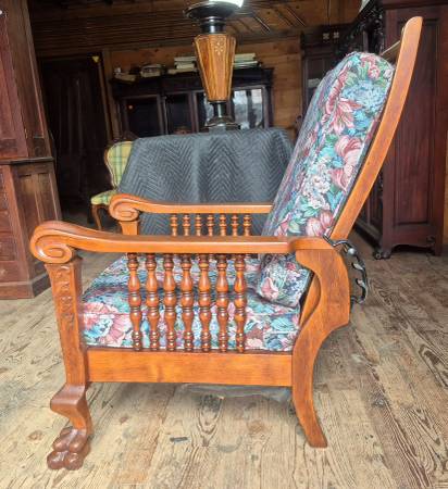 Very Stylish Design - I believe the wood to be Birch - Original Finish - Circa 1890s - Chair is tight and sturdy.