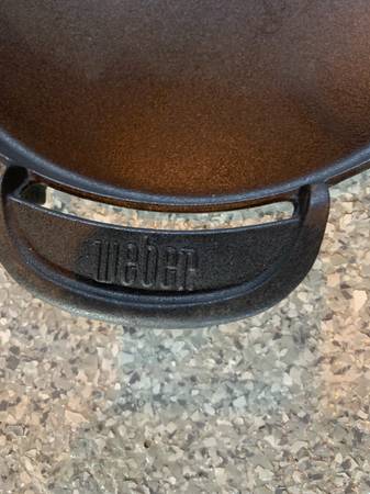 12" round porcelain-enameled cast-iron grill griddle. Like new (the dark spots you see in photos is the shadow from my phone) Cash only